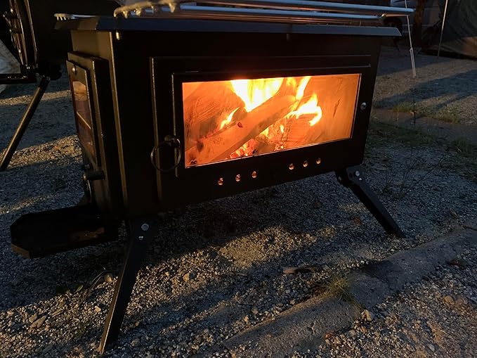 キャンプの醍醐味と言える焚き火をしたいけど外は寒いといった場合は、薪ストーブの炎を鑑賞できる大きなガラス窓が付いているモデルを選ぶのがおすすめです。テントの中でも、まるで焚き火をしているかのような体験ができます。