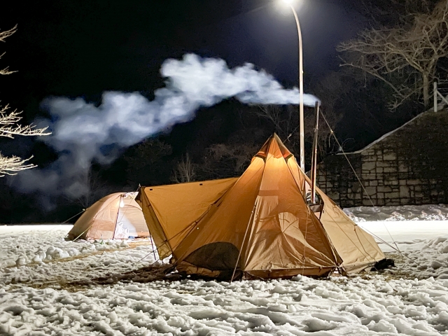 寒い冬のキャンプを楽しむためには、薪ストーブを使用するのがおすすめです。薪ストーブがあれば厳しい寒さでも、テントの中で暖かく過ごせます。
